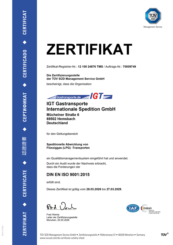 Die Qualitätspolitik der IGT Gastransporte GmbH wird durch unternehmerische Sorgfaltspflicht und Verantwortung gegenüber den Kunden, der Gesellschaft und der Umwelt in unseren Unternehmensgrundsätzen bestimmt.